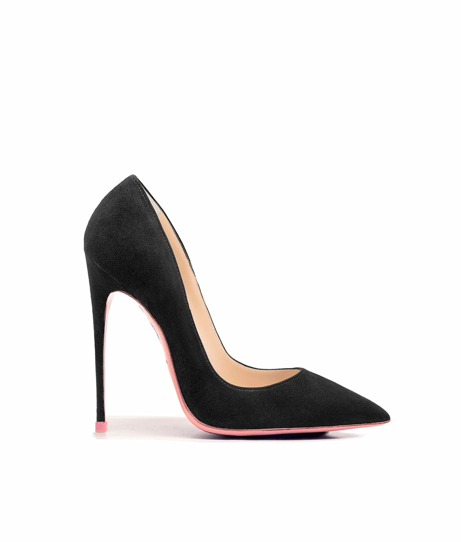 Adhara Black Suede · Luxury Stiletto High Heels with pointed toe · Classic stiletto pumps with an elegant designs made for every occasion. definitely your must have pair of shoes.