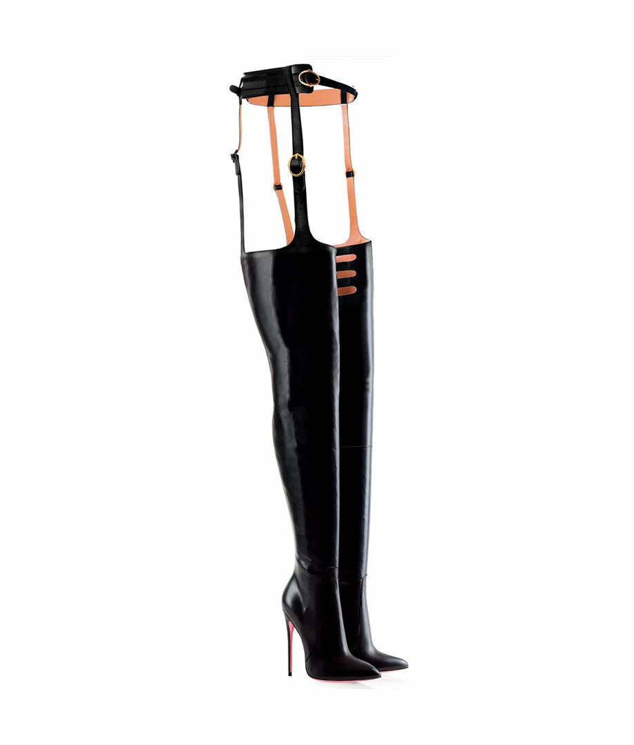 Adaia Black · Special Design exclusive in charlotte-luxury.com · These boots are made in soft lambskin leather to get the perfect fit on your legs. These chap bondage boots are super and makes your outfit will be amazing.