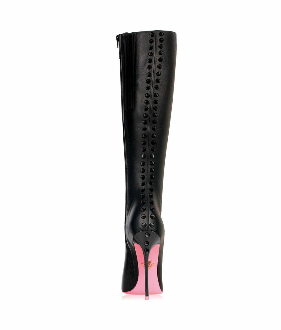 Crux Black · These boots designed without seams for a free and very elegant finish and are decorated with stus around the rear of the boots. These boots are made with a single piece of cow leather with a shiny and very smooth finish. Love Studs!!