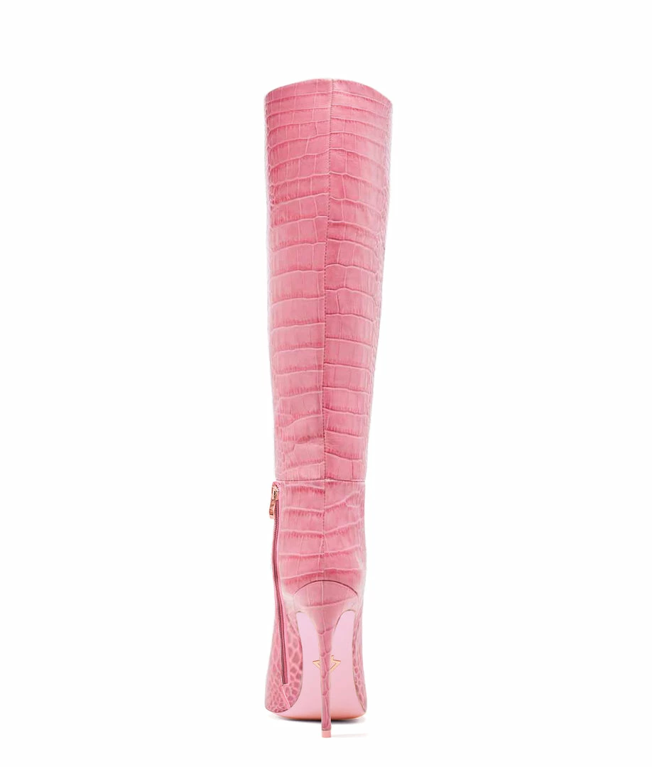 Dubhe Pink Alligator · Special Boots made in real alligator or printed on leather. High up to the knee and made with a special design that allows to get some tube boots with a leather lining adjusted. Allowing the best of both designs. That you can walk and your ankle this subject and the straight design of the tube boots. Exclusive design by Ada de Angela Shoes & Boots