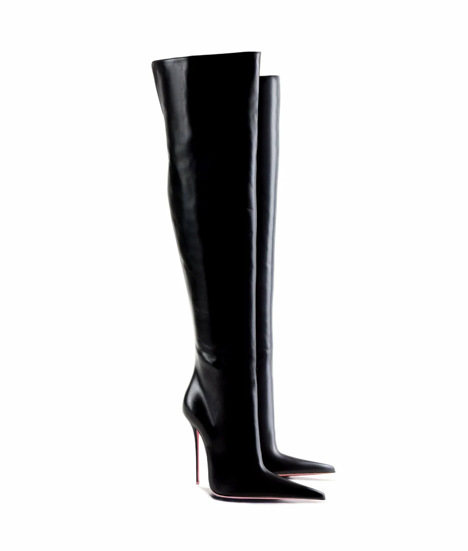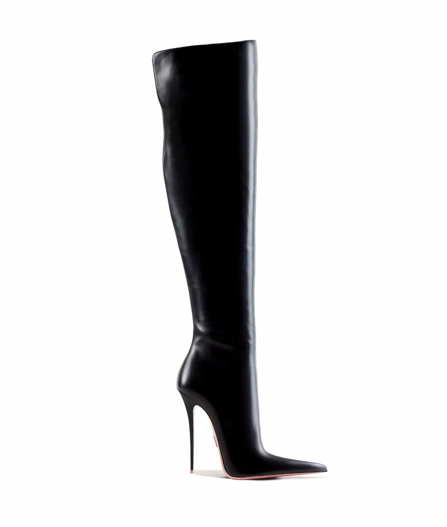 Maia Black 125 · These boots designed with a special extra long pointed toe and special thin heel. These boots are made with smooth baby calf leather. Cover your entire legs with pure fetishism.