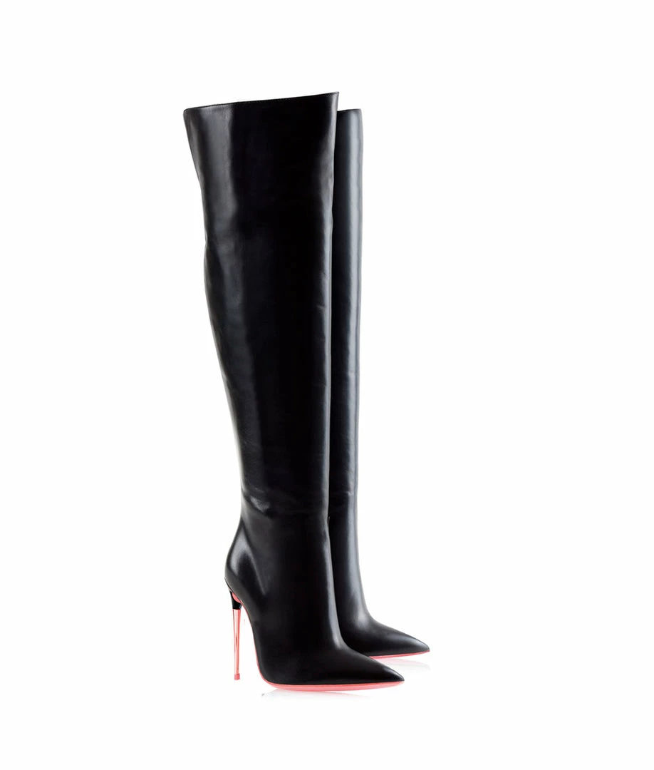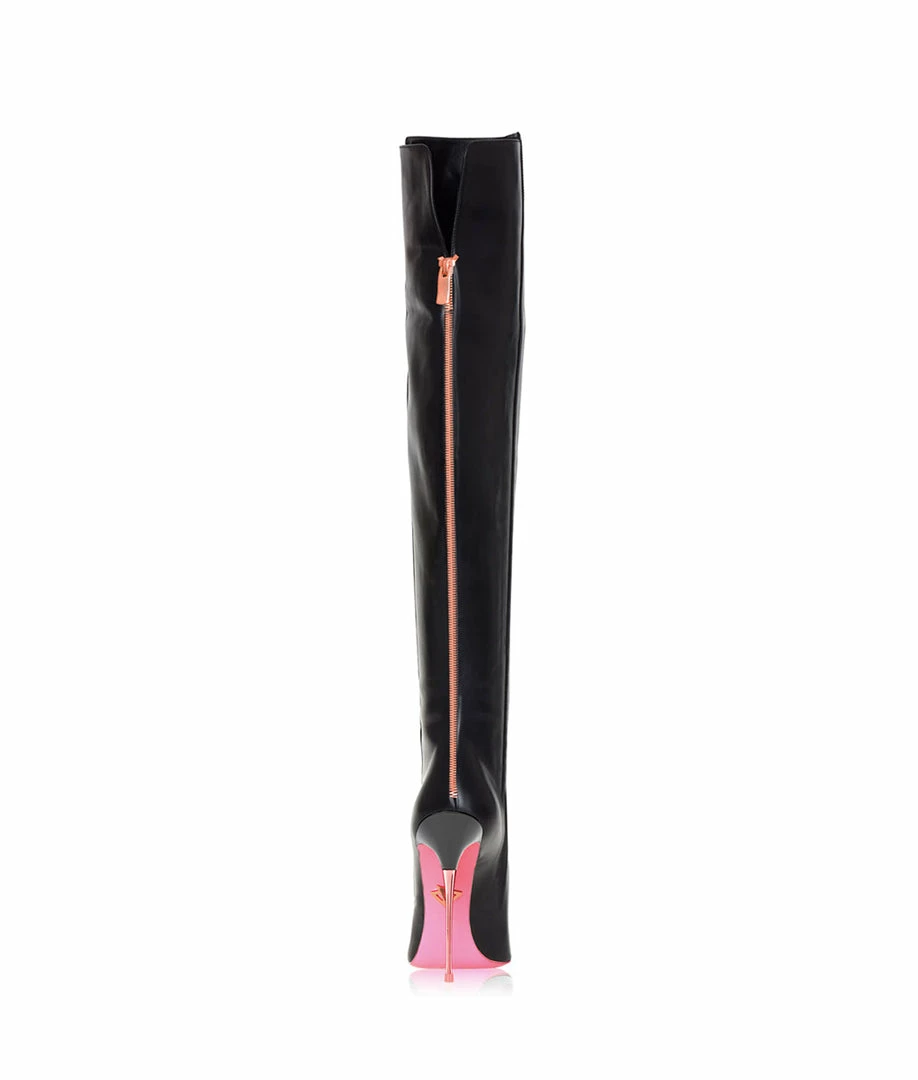 Mira Black · These fabulous over knee boots with metallic heel and functional zipper covering the entire back of the boot in rose gold color (also possible in silver and gold color / heel and zipper / ask us) Without a doubt these boots will be one of your favorites and they will have a privileged place in your closet