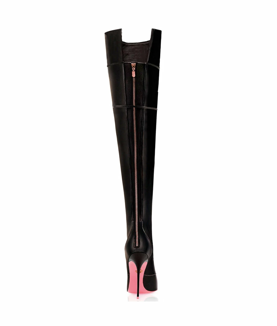 Sabika Black · Pretty Over knee Boots with decorative laces in the front that give this model a lot of character and personality. These boots cover your knees with a small opening and zipper full boot in the back in gold rose creating exclusivity in every little detail