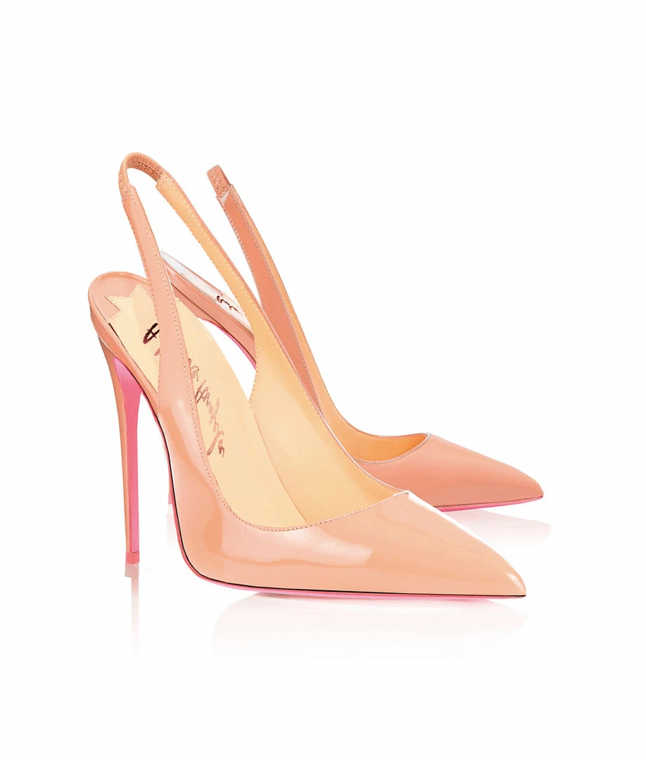 Caph Nude Patent · These pointed toe sling back shoes made in black patent leather. A model of high-heeled shoes with a sophisticated and very seductive style. Ideal to wear both day and night..