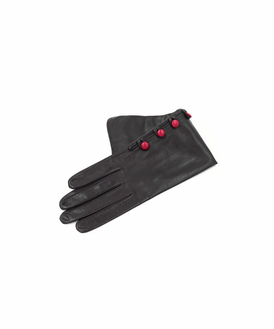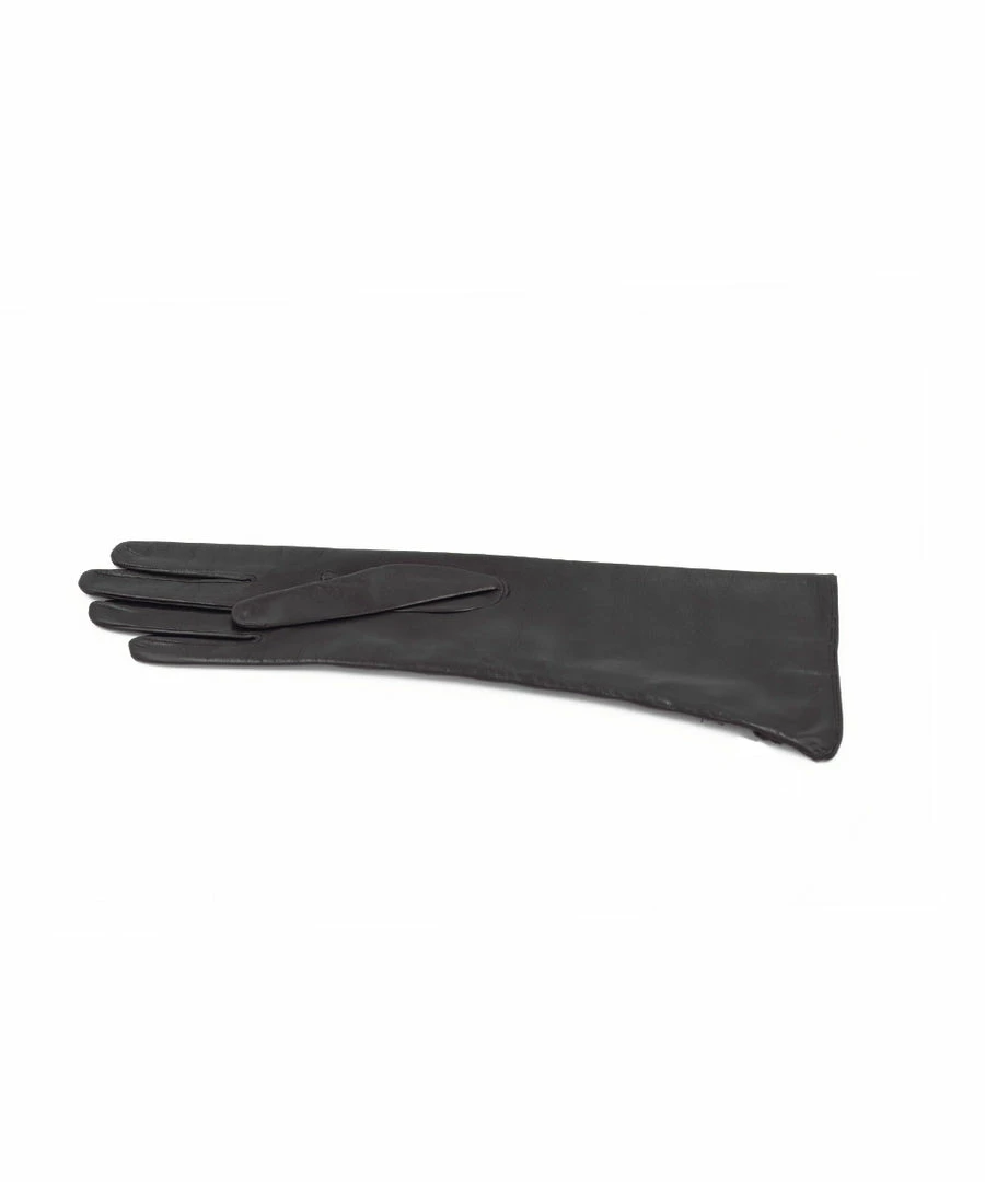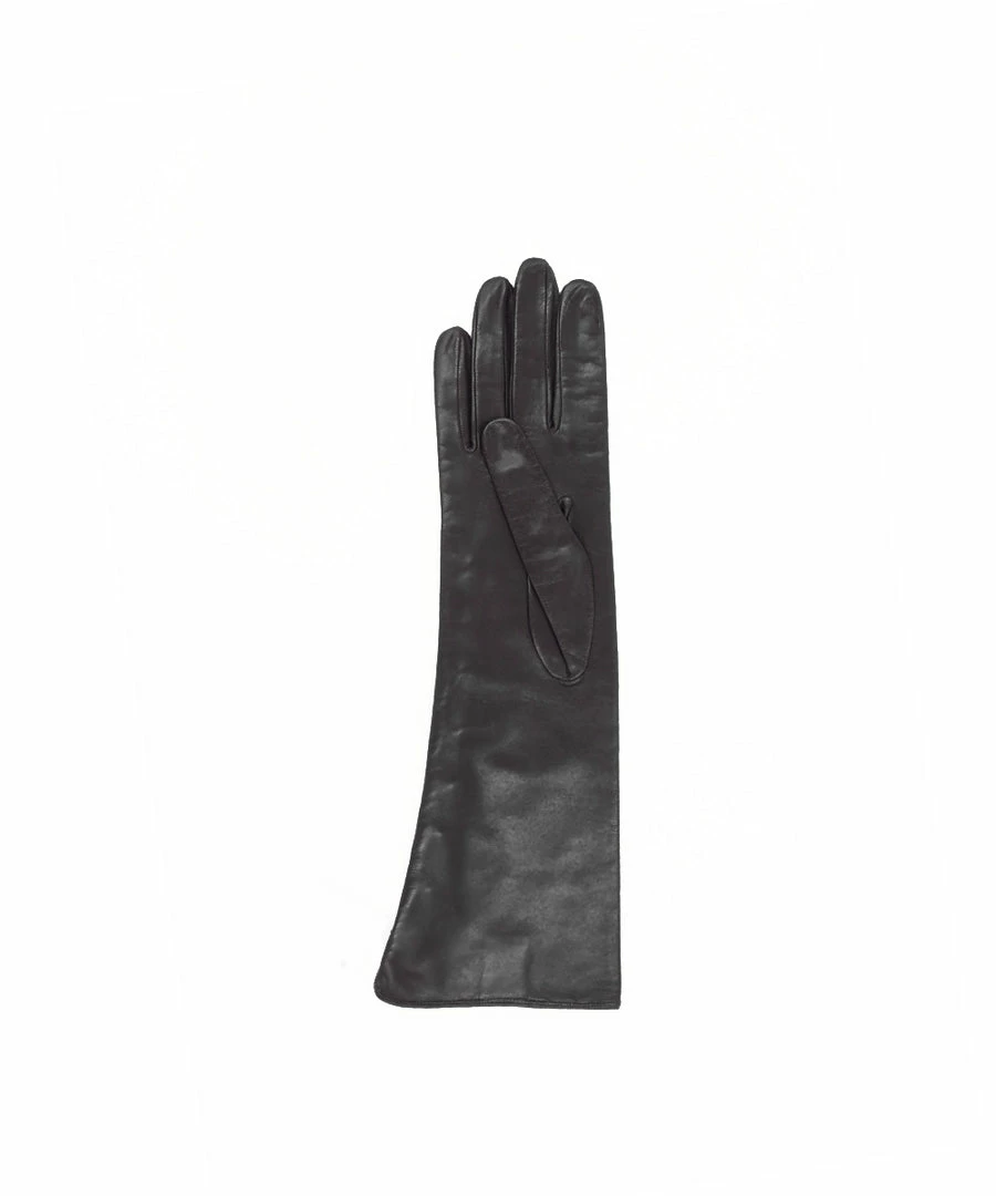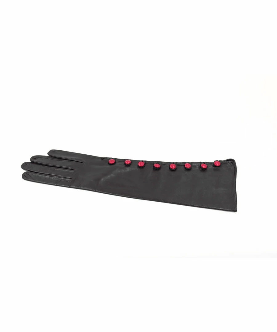 Euria Black · Elegant and sophisticated elbow-length gloves with 8 side buttons in leather.