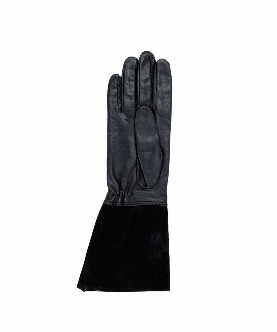 Grin Black · Casual gloves with long cuff in suede with elastic. Elegant and comfortable