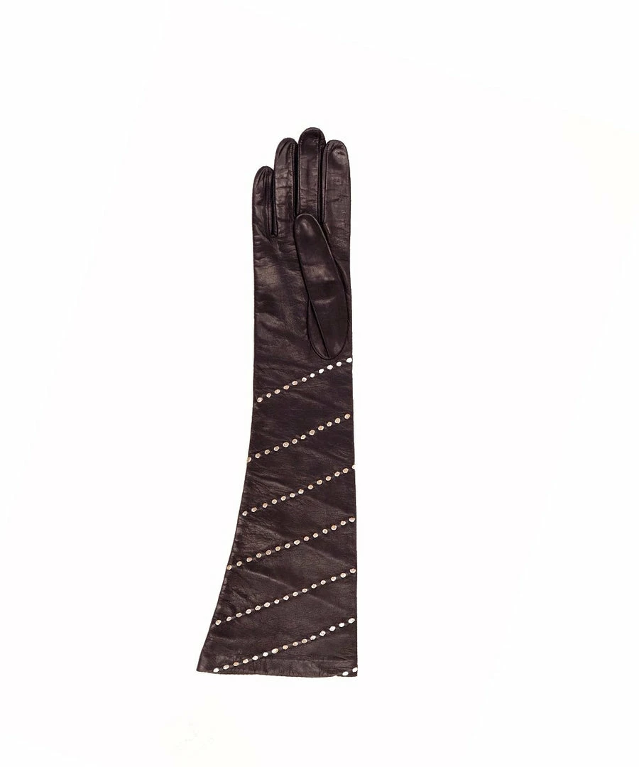 Miris Black Elbow dress gloves with silver mottled decoration