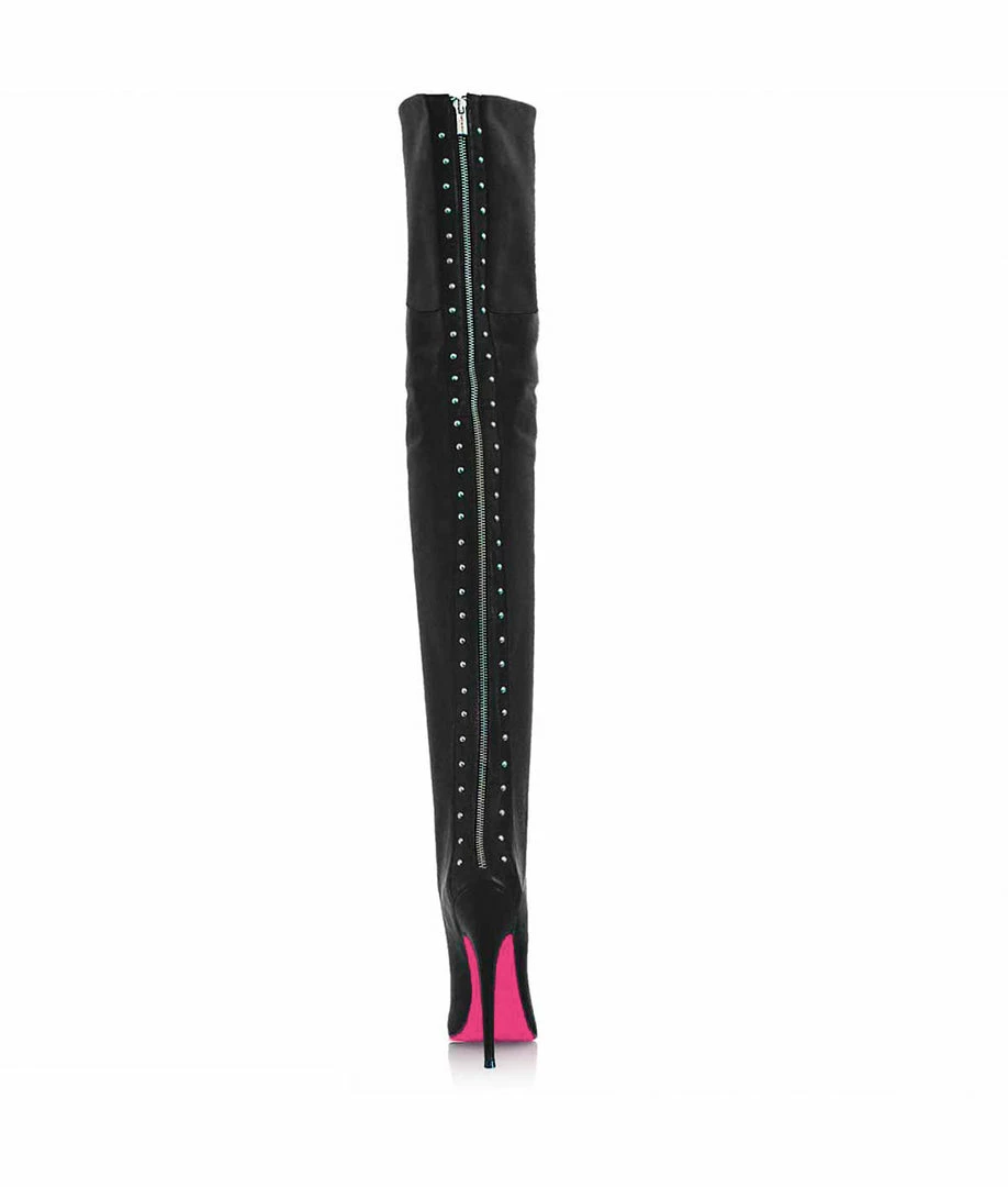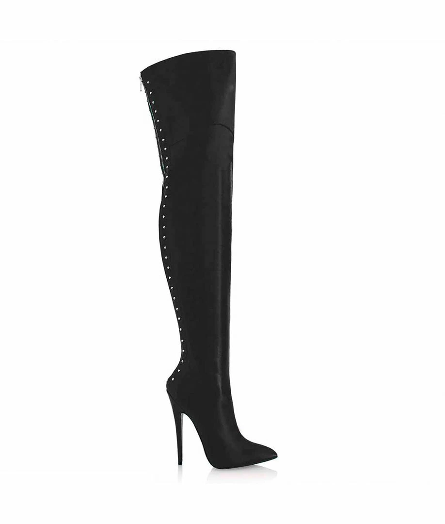 Rea Black · Pure genuine leather boots made to worship. This pair of thigh high boots is designed with extreme high heel ( 14cm in size 37). These boots evoque pure fetish sensations and not make for walking. Pure desire and fetishism