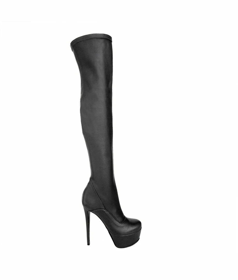 Asamoa Black · These platfom over knee boots made in vegan leather let one perfect fit to your legs with this material. Boots made in Italy directly for your closet.