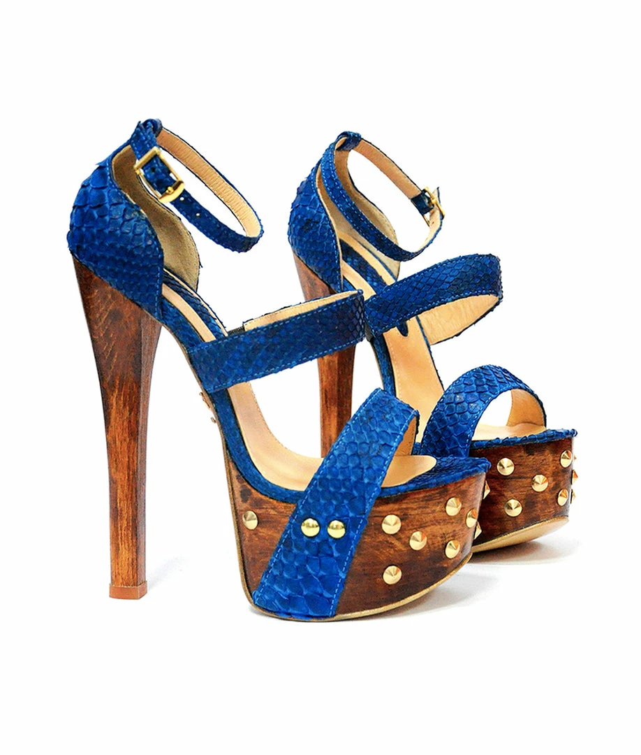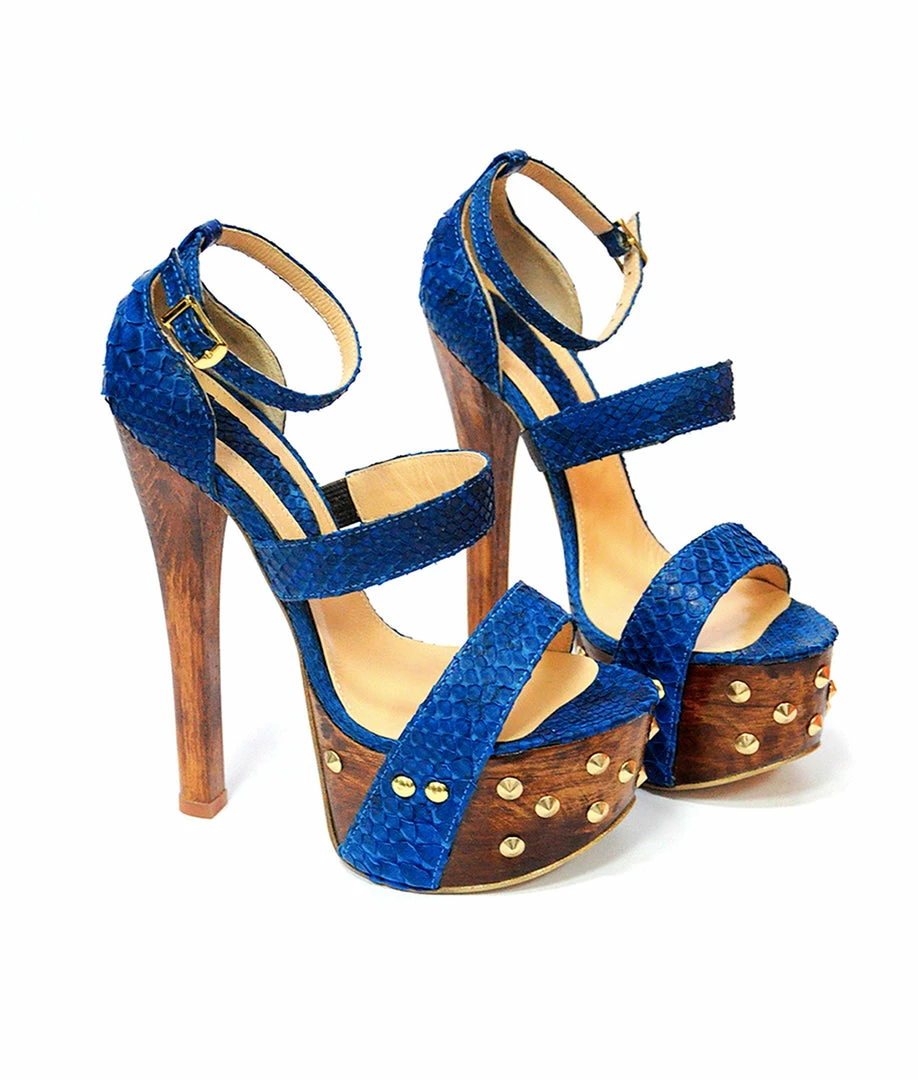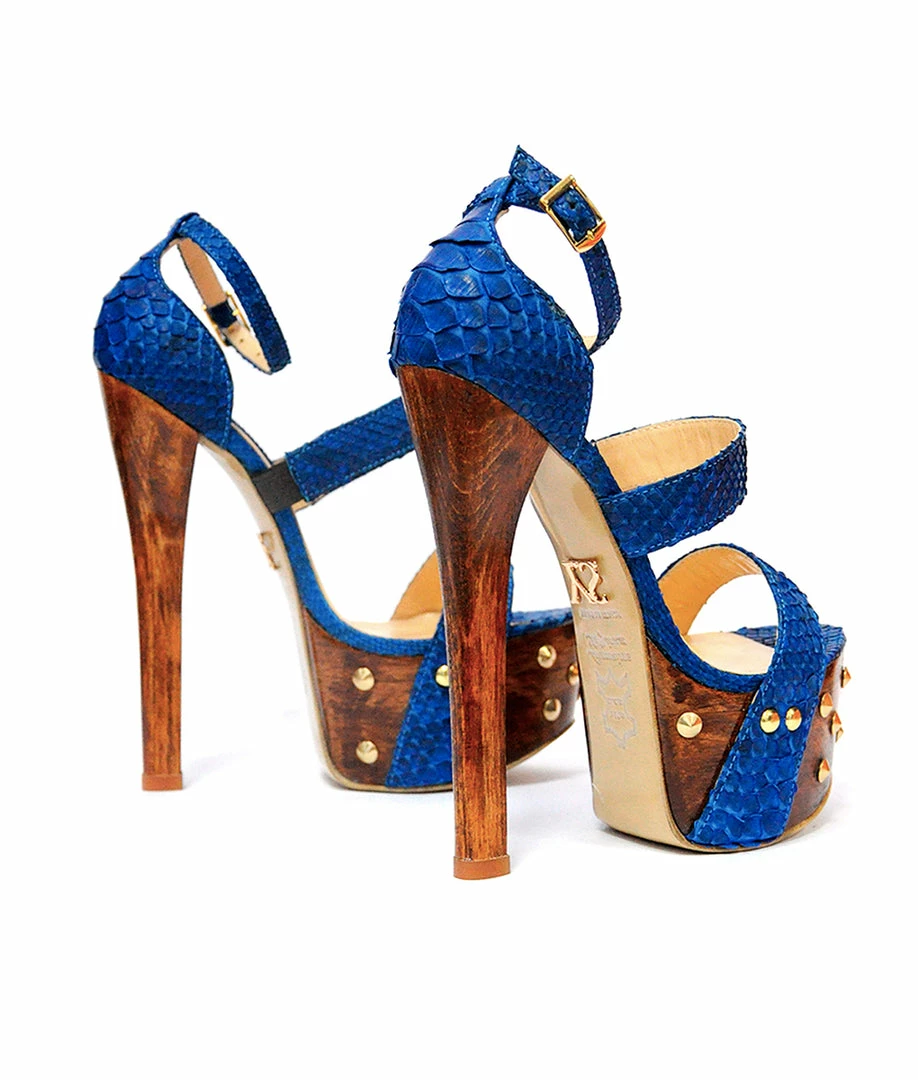 Krystall Blue Python – This pair of sandals has a stylish design and specially created to highlight any outfit. Its heel and wooden platform give a robust and casual style to the model. Choose the characteristics that you like the most and personalize your model of sandals.