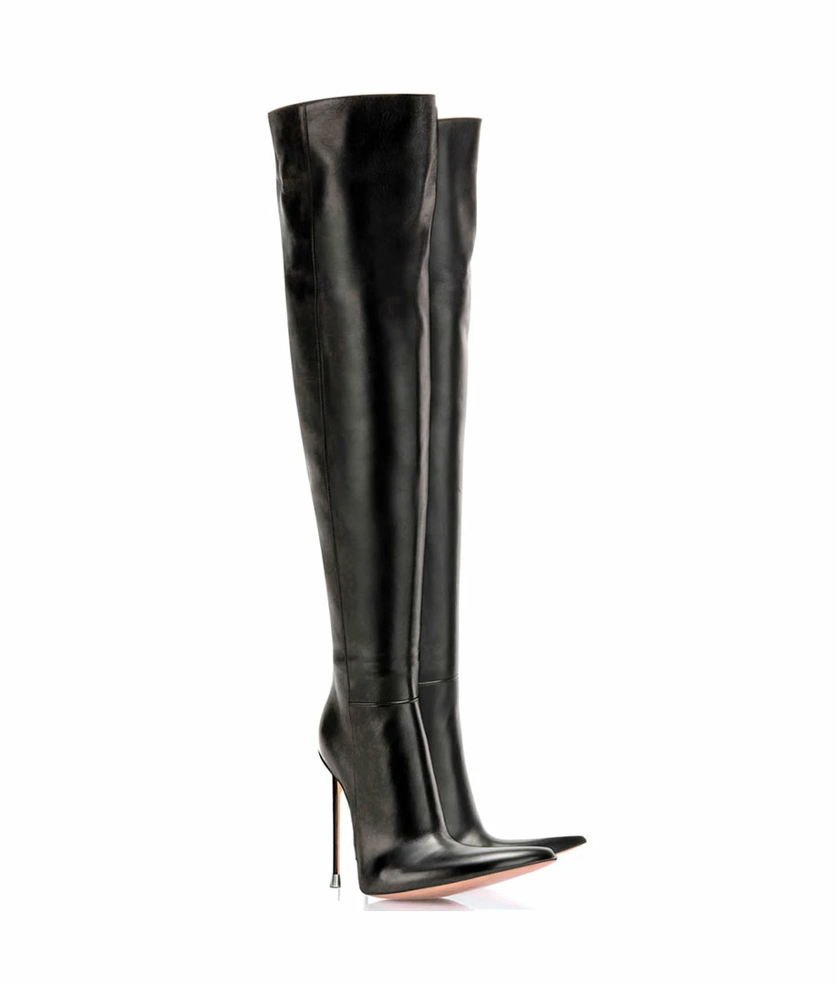 Dassel Black – This pair of over-the-knee boots is an elegant and stylish model designed with a long toe and a very fine stiletto heel. A basic for lovers of high boots. Custom your own model.