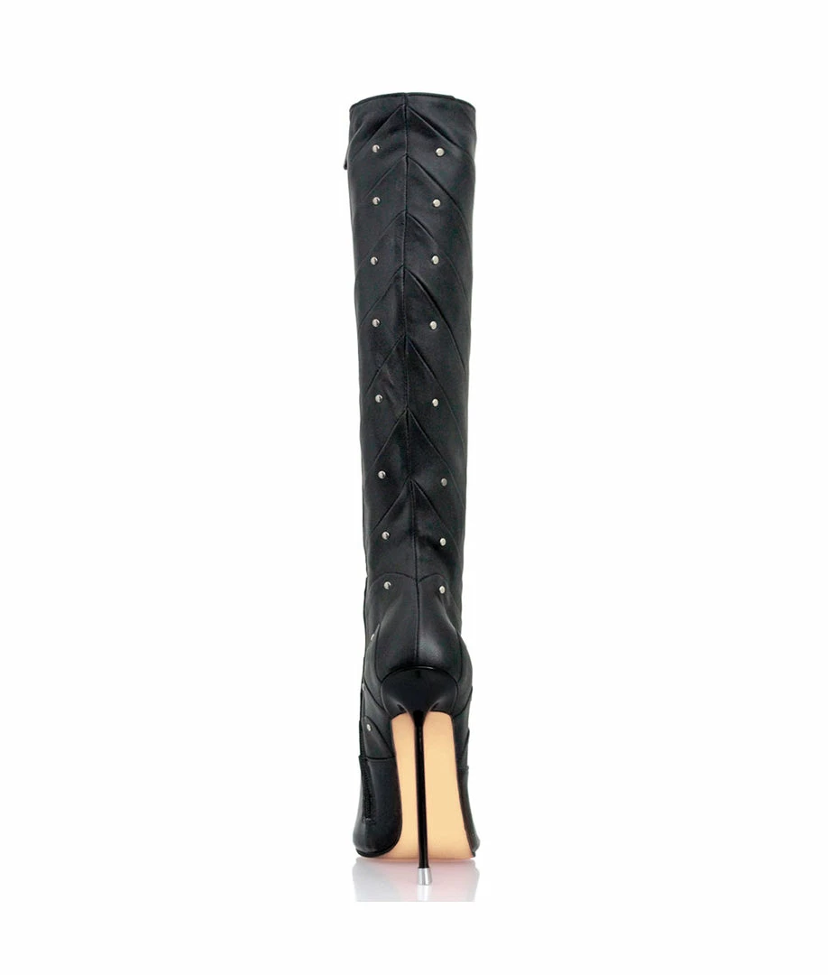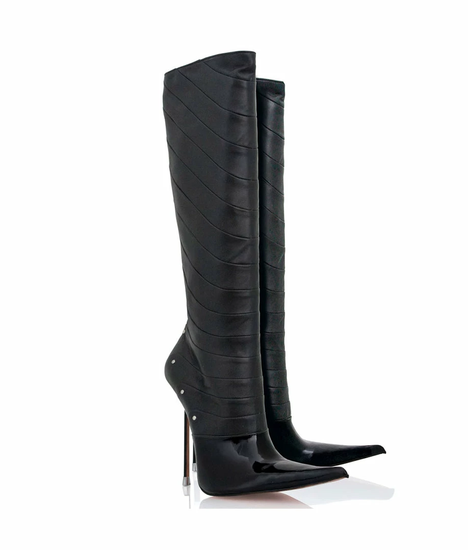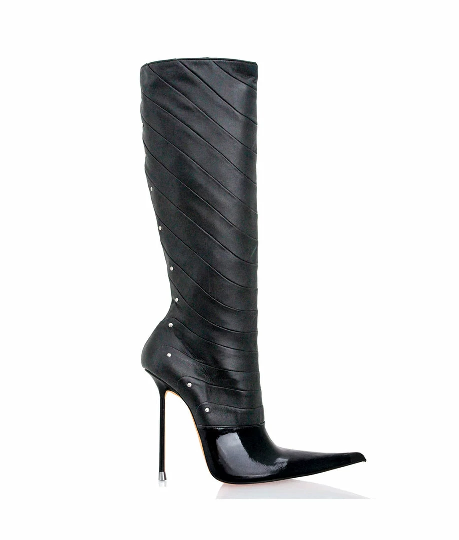 Doolas Special Design – These special design boots are made in black color with leather folds and small silver studs at the ends. These boots are a small handmade work of art… Special design with pointy cover in patent leather in black color. An exclusive design for by Jostcab from Di Marni – Vicenzo Rossi exclusive in Charlotte Luxury. Its classic design thin heel, certainly makes this model is sexy and special on all sides..