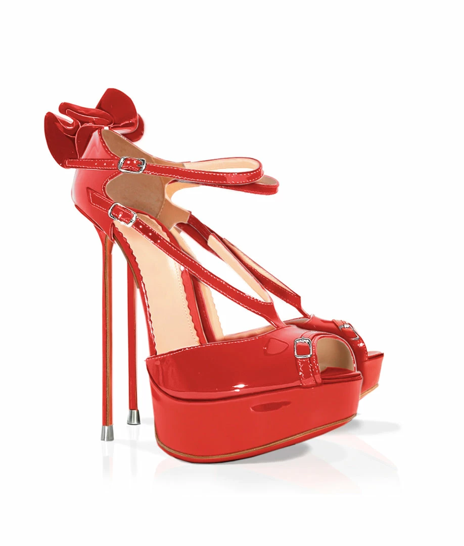 Deconte Red Patent – Seductive heeled sandals crafted from shiny patent leather in aubergine. This pair of elegant sandals is designed with straps, open toe and thin stiletto heel. A real delight for shoes lovers.