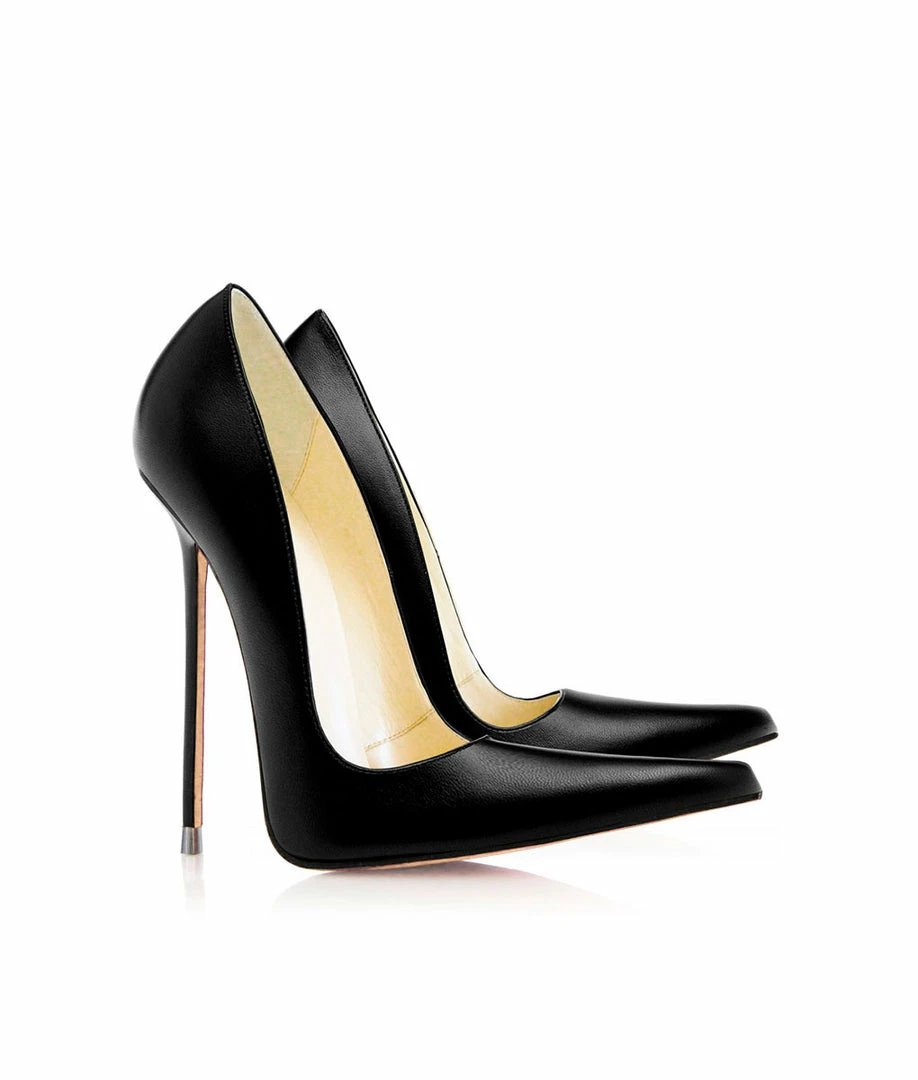 Manx Black is a pair of elegant and provocative stilettos with high thin heel. Design crafted from high quality genuine leather. Pointed shoes designed with long tip and perfect finishes. Customize your own model! Choose your favourite type of heel, color of sole and the inner color.