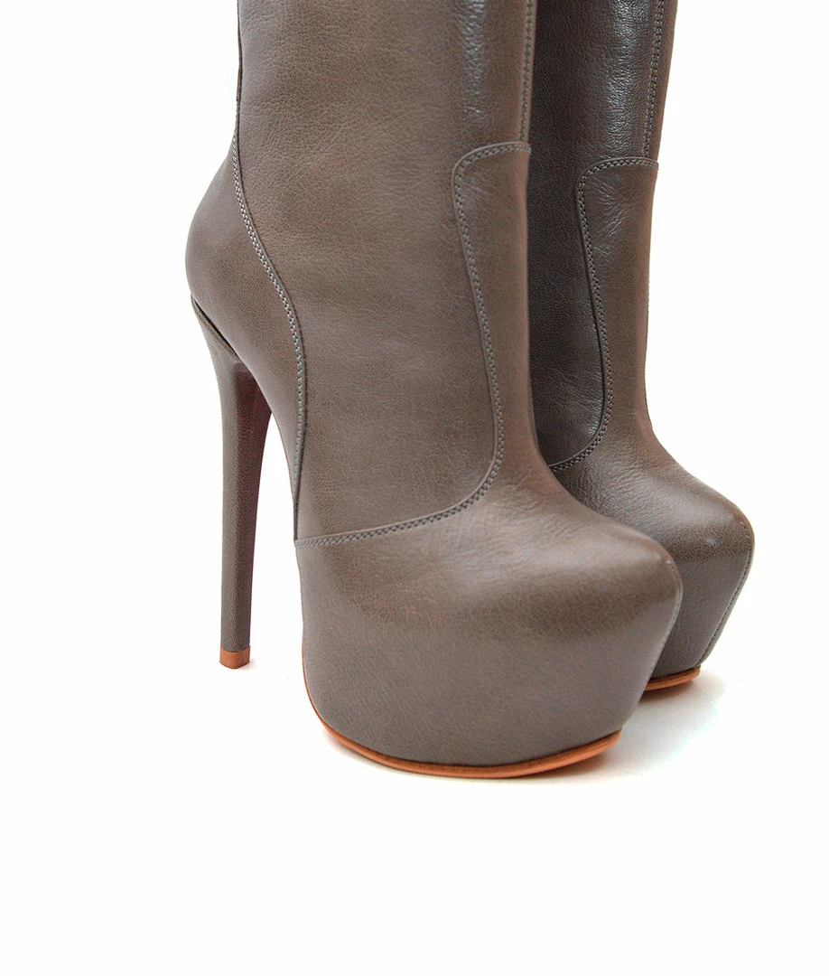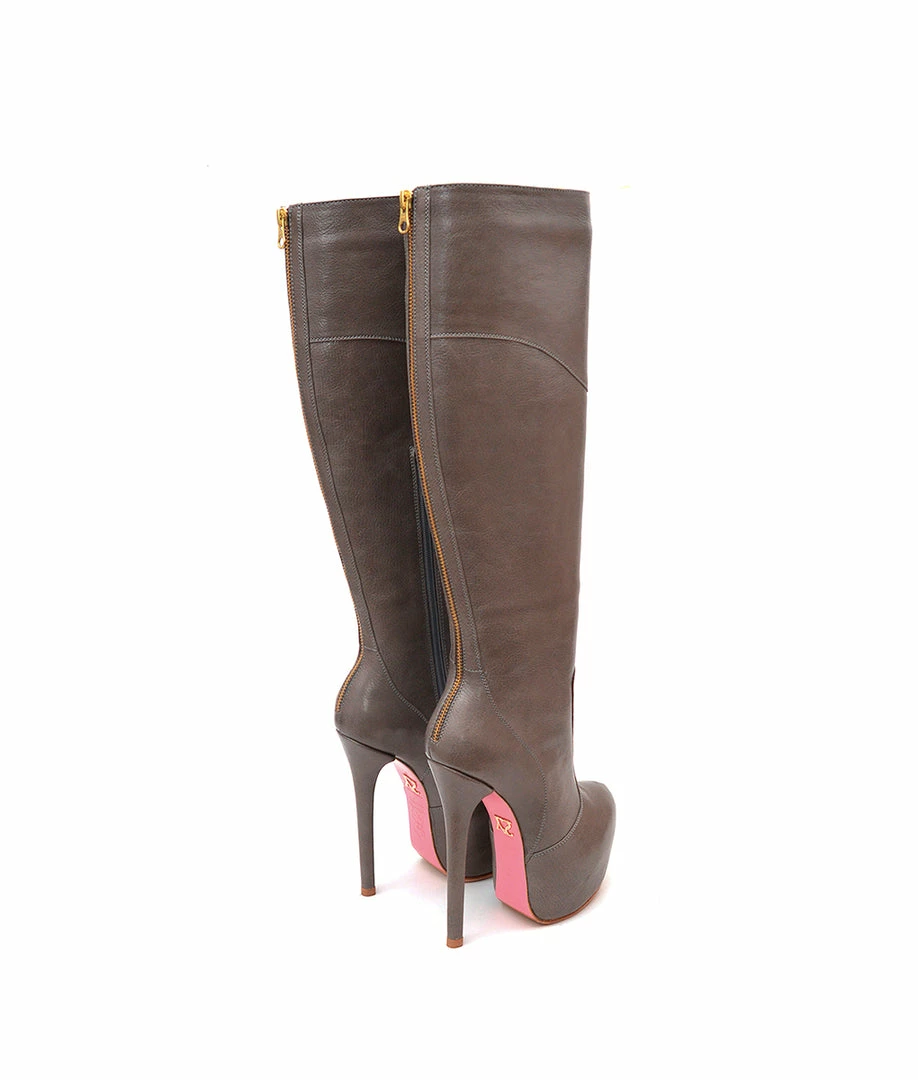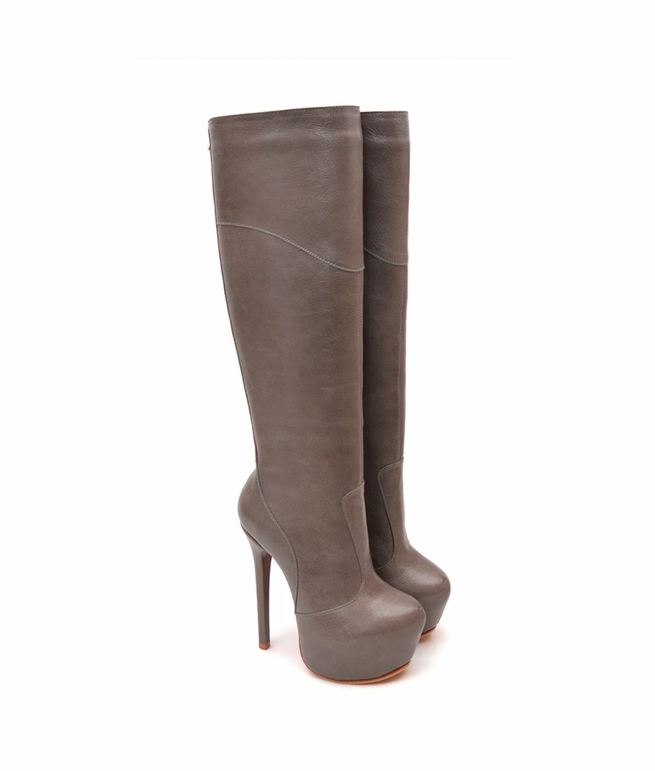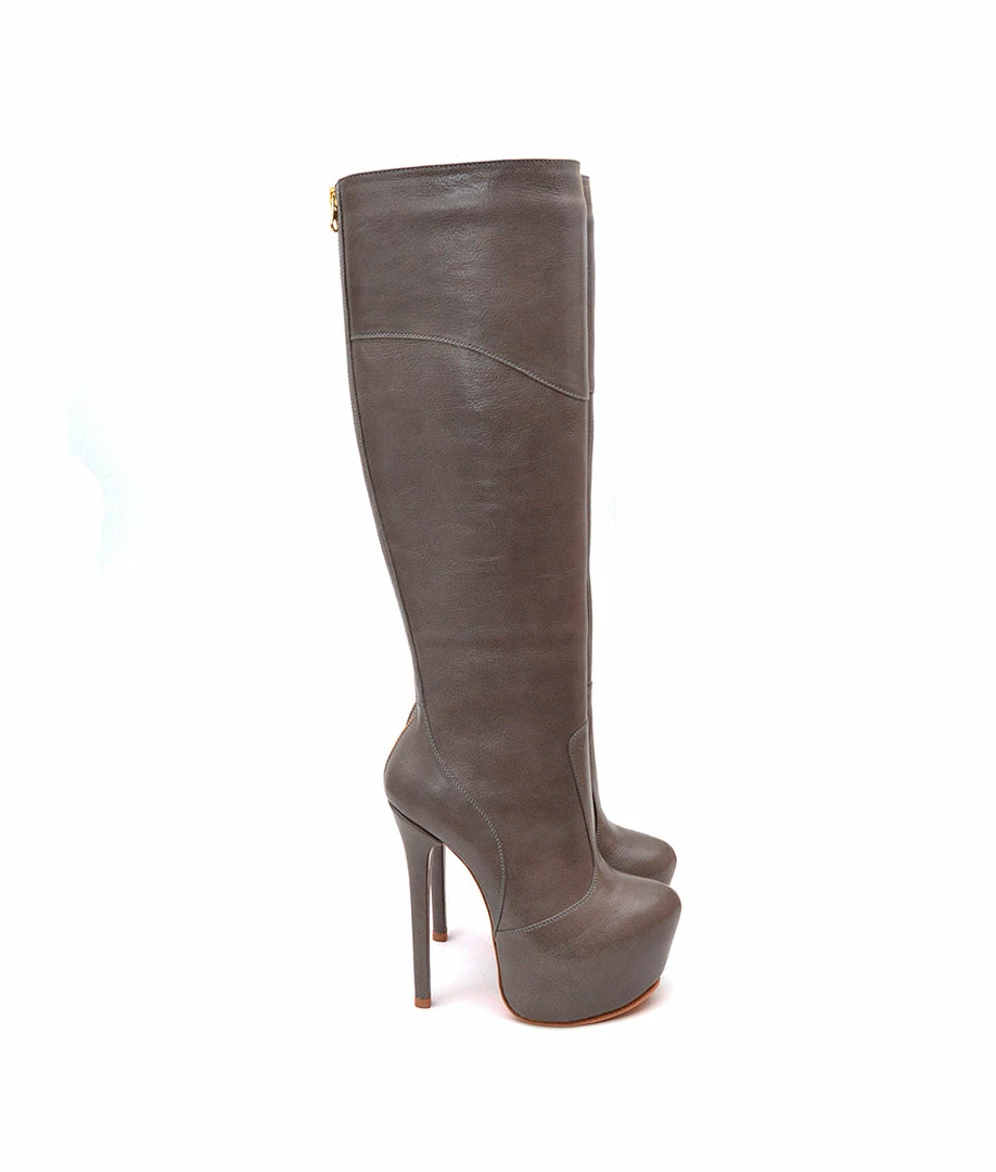 Darika Gray · Platform knee boots custom made crafted from genuine leather. Very attractive design with golden rear zip along the leg of boot. This pair of boots have a versatile style perfect for your looks