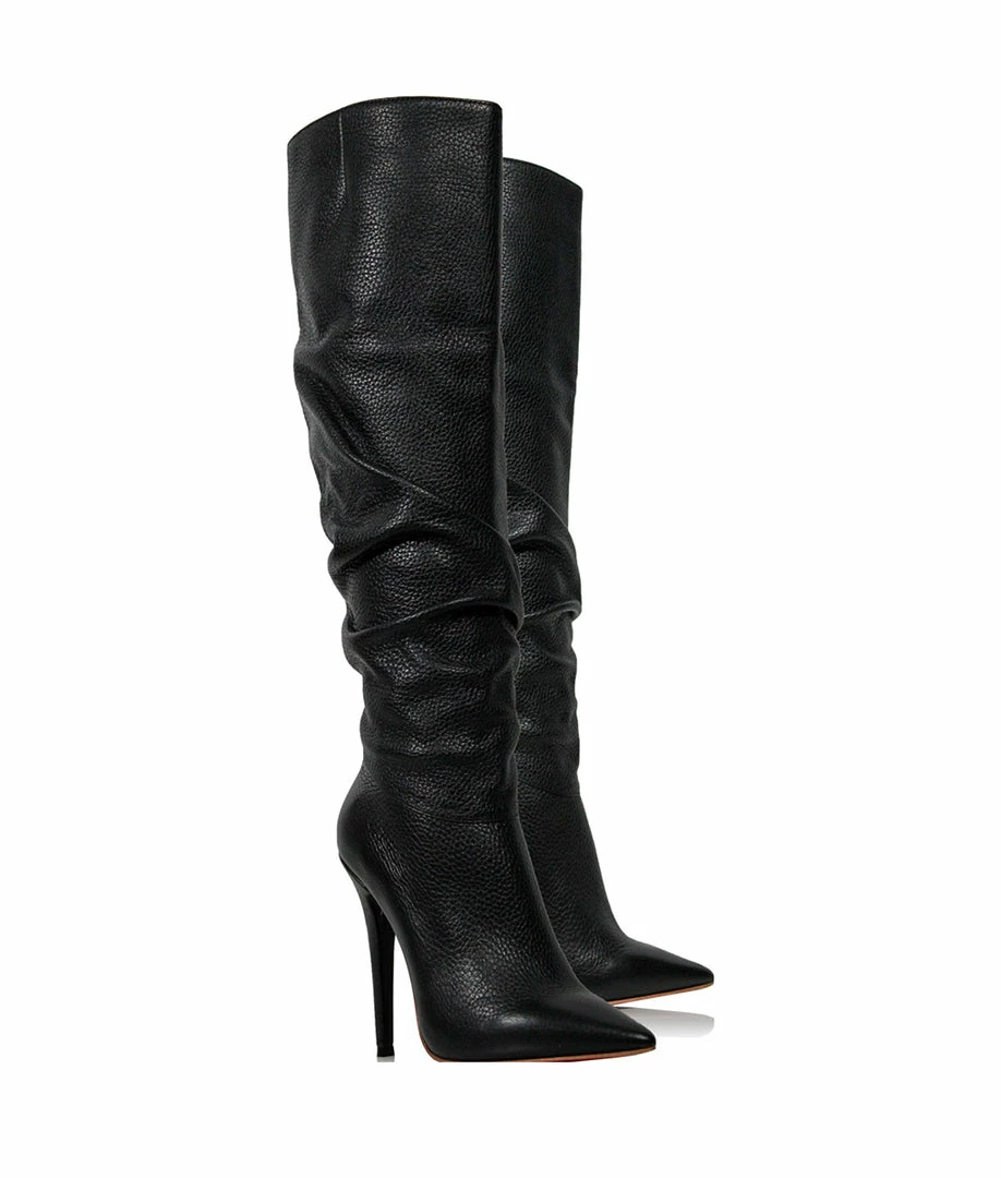 Draccon Black – High-heeled knee-high boots with a draping. A casual and elegant model ideal to wear on your day and night looks