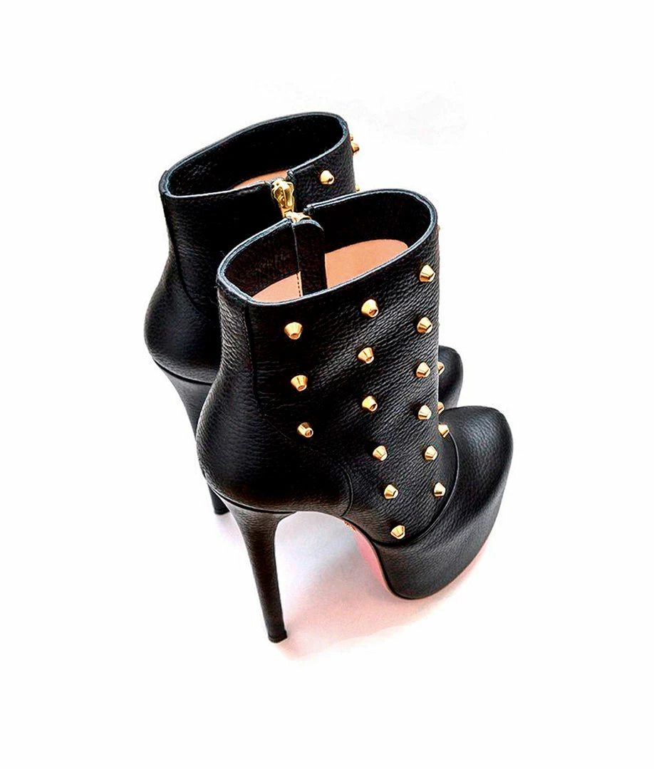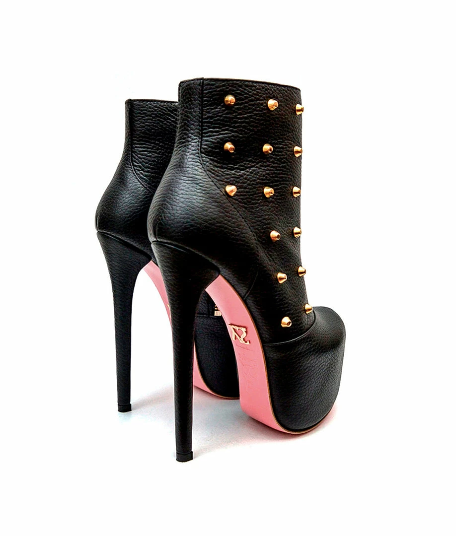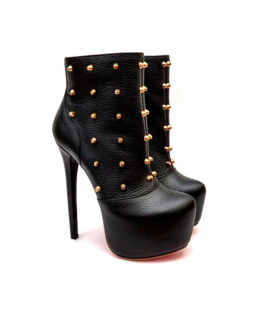 Fyann Black – Platform ankle boots with a very high heel. This ankle-length design is characterized by its gold studs. A model with personality and ideal style to enhance any of your looks..