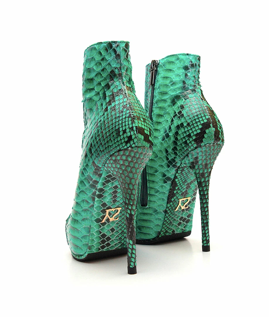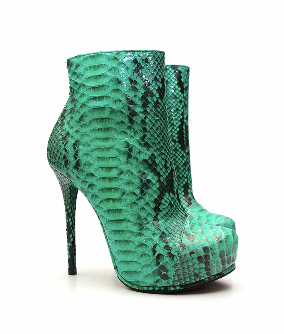 Ovalon Green Python – Ankle Platforms boots with a simple design and a very high heel in Python Leather. Choose your preferred sole color and heel height.