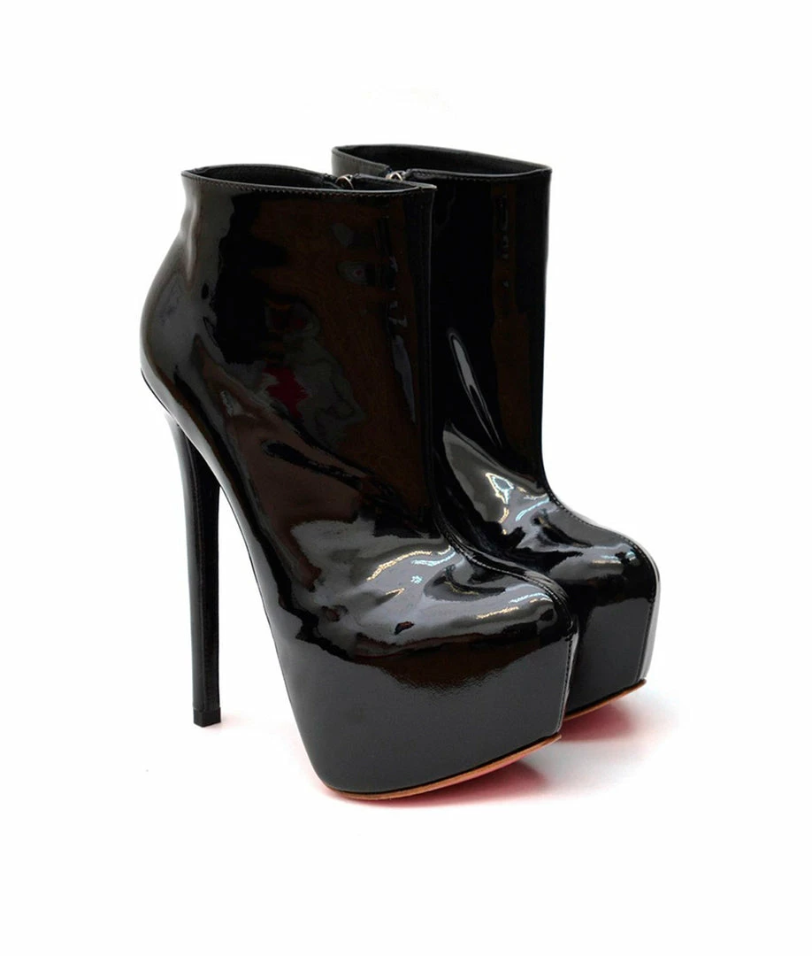 Shana Black Patent – Platform ankle boots with high heel. This model has an ankle-length cut-out design and covered platform. Customize your model choosing the height or the color of the sole.