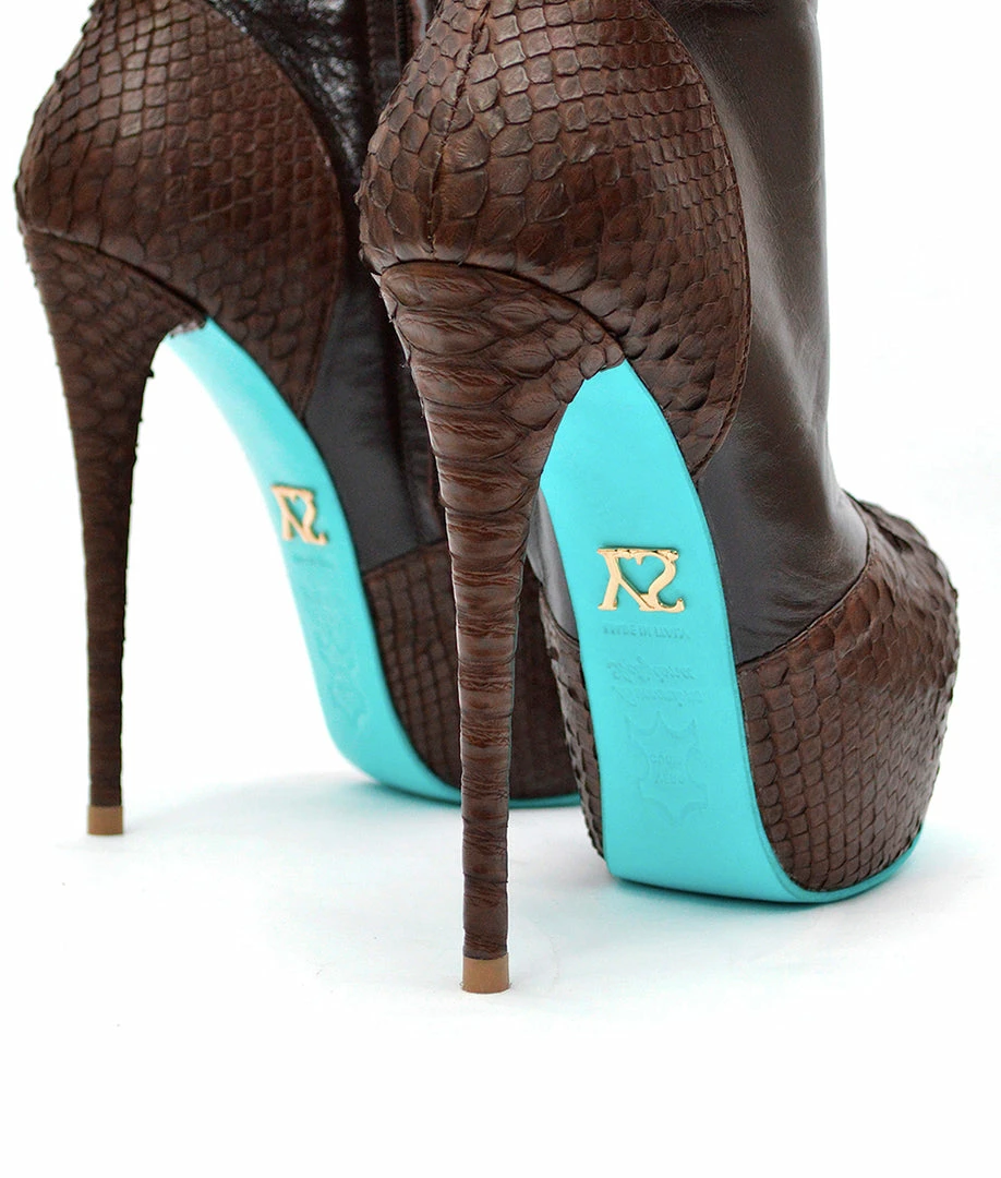 Simuna Brown Suede – Platform knee high-heeled boots. This model has a side zipper that runs through the entire boot. Customize your model choosing the height or the color of the sole.