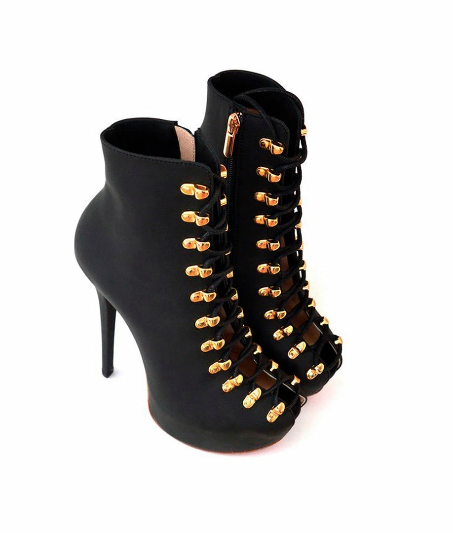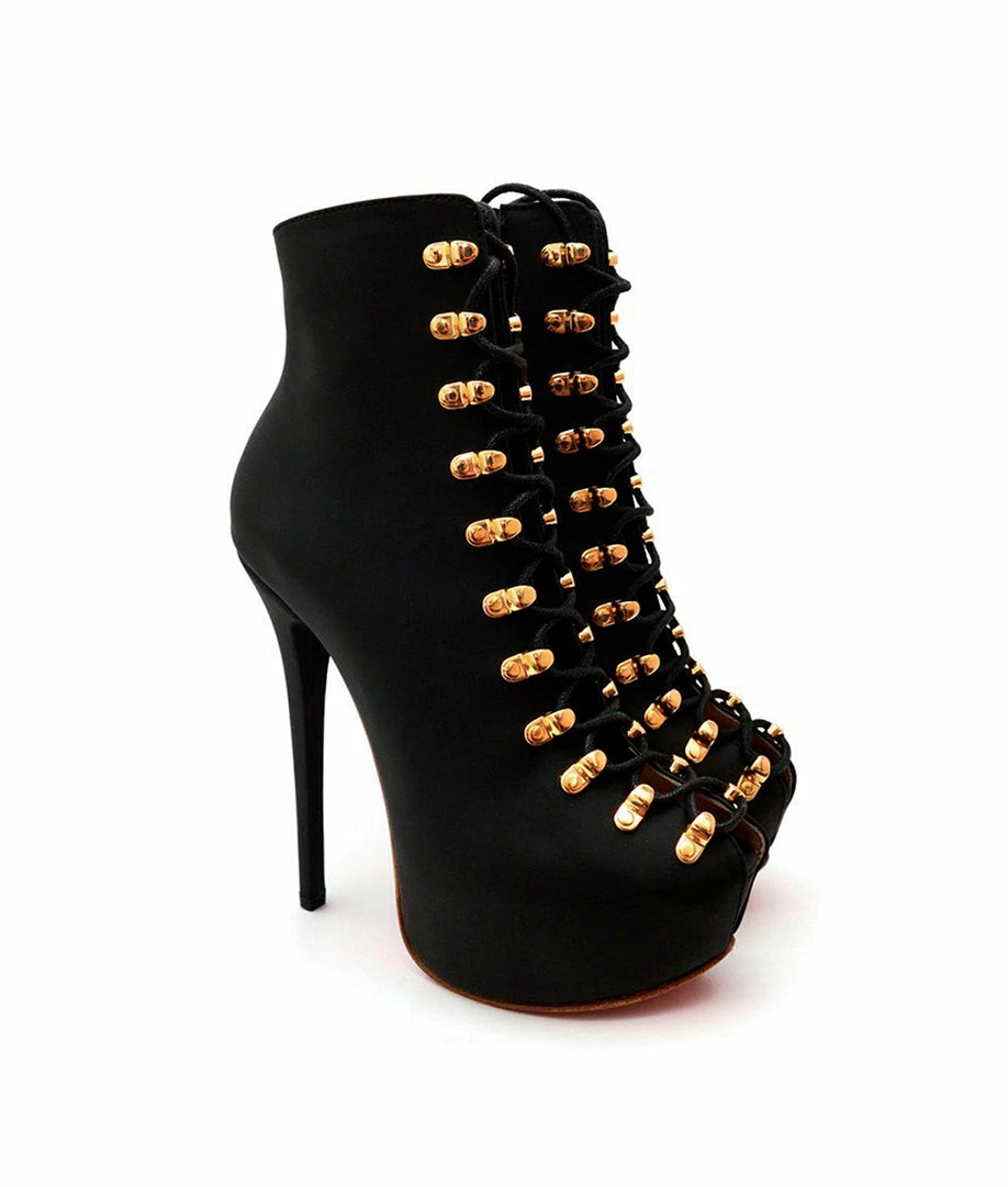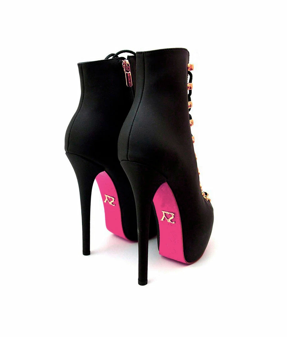 Suma Black Suede – Ankle boots with peep toe opening and lacing on the front. A dissenter and original model ideal to highlight any look. Customize your model choosing the height or the color of the sole.