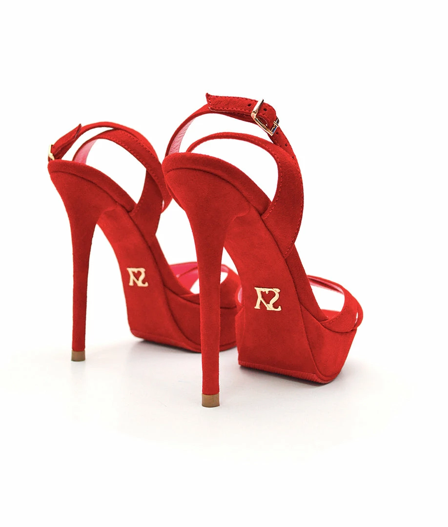 Crabas Black Suede · Singular model crafted from suede black leather. Heeled sandals designed with three straps and embellished with brilliants on the ankle bracelet..