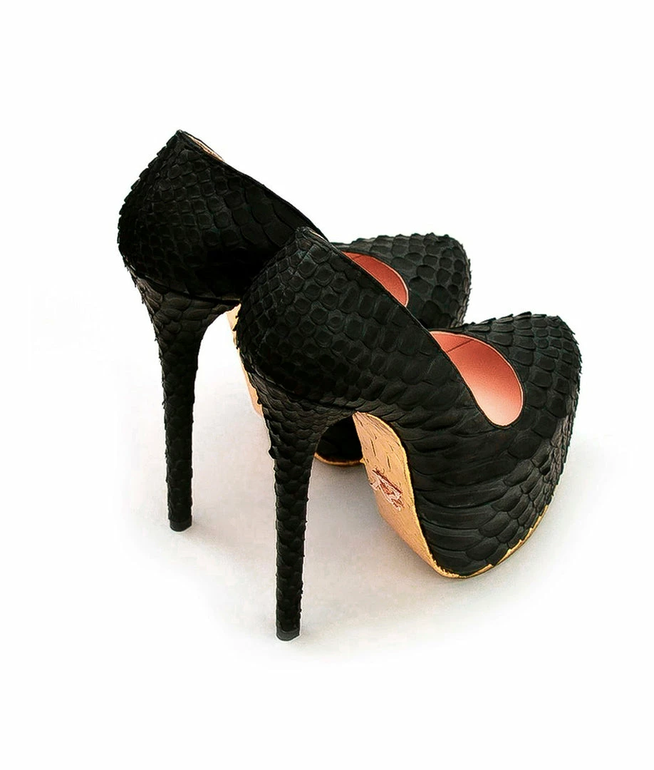 Uda Black Python · Exclusive model crafted from real python leather. These shoes captive all eyes. Sincerely one must have in your closet. One special shoes by one special person like you. If you are a truly high heels lover this pair of shoes is made for you. One piece made with high quality materials that will capture all glances in every step you take.